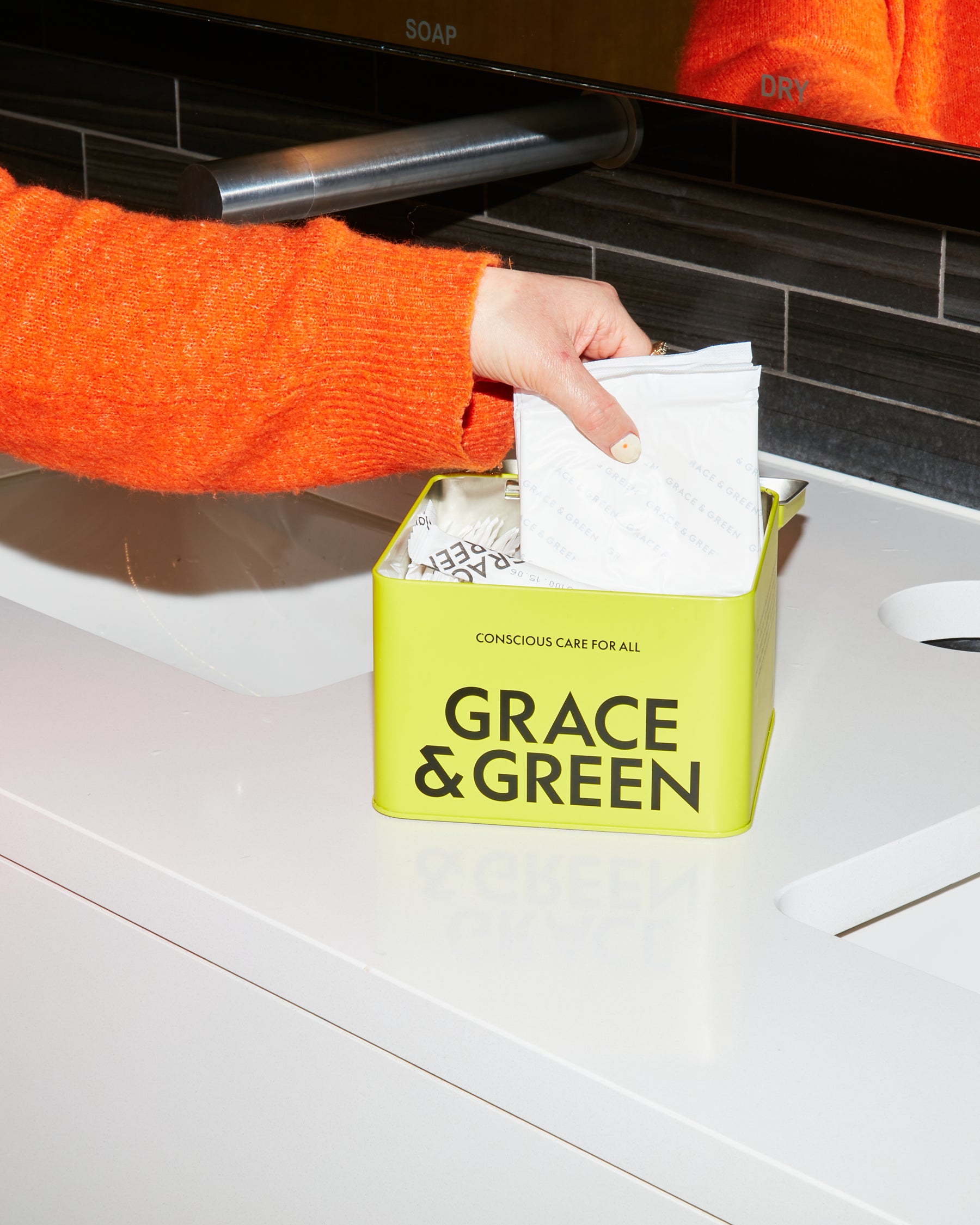 Designed to reduce waste and made with certified organic materials, wrapped in compostable packaging.